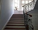 На втором этаже, на который ведет деревянная лестница с ковкой ручной работы, находится кухня, презентабельная зона с мраморным камином, библиотека, спальня, две ванных комнаты, балкон. Стильная лестница украшена впечатляющей семиметровой хрустальной люстрой.