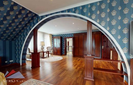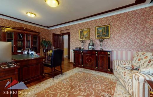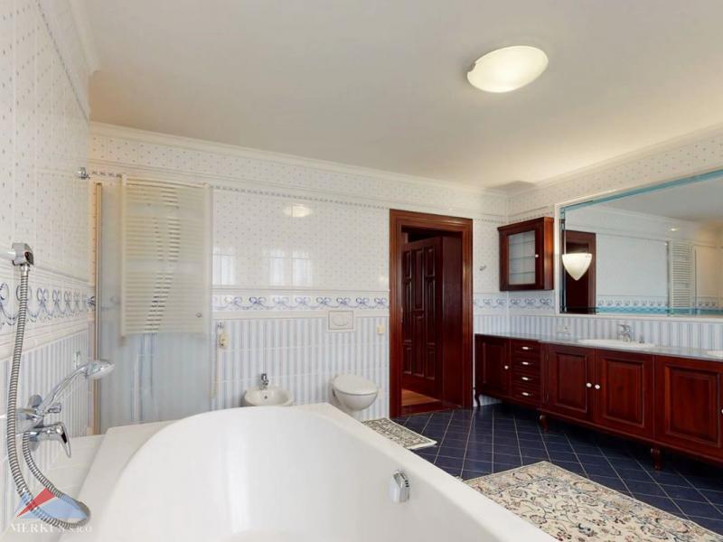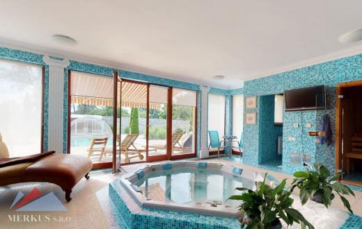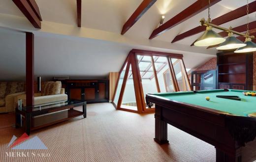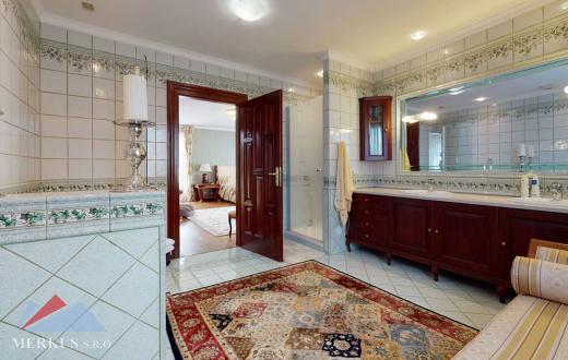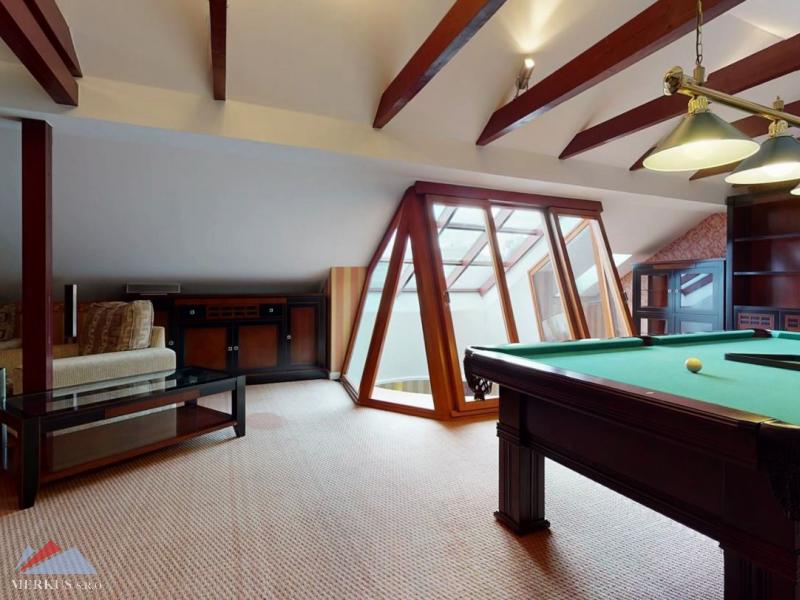 Продается вилла 770 м2, 5+кк, Участок 4 307 м2, Прага- Запад, Jesenice Цена 2 100 000 евро Дом был построен в 2006 году, а в июне 2020 года интерьер и экстерьер были модернизированы. Все используемые материалы имеют первоклассное качество с точной обработкой и самым профессиональным монтажом. В интерьерах преобладает экзотическое дерево (полы, двери, дверные рамы, окна, сайдинг, лестницы). Достаточно света даже в центральной части дома обеспечивает стеклянная крыша над лестницей. На первом этаже находится гостиная с камином, кухня, столовая, кабинет, фитнес-центр и оздоровительный центр с джакузи и сауной, а также необходимые технические помещения. Большинство номеров на первом этаже имеют прямой выход в сад. На 2 этаже можно попасть в три спальни, каждая из которых оборудована собственной ванной комнатой, и далее в кабинет, из которого лестница ведет на чердак, служащий комнатой отдыха с бильярдным столом и проекционным экраном. Из гаража на два больших автомобиля можно пройти прямо в дом, парковка для нескольких других автомобилей находится перед домом. Дом полностью кондиционирован, отопление осуществляется газовым котлом с баком для горячей воды. Резиденция окружена со всех сторон большим, профессионально ухоженным декоративным садом, в котором также есть крытый бассейн с подогревом. Все удобства, торговый район, детский сад, школа, несколько ресторанов и аквапарк находятся в нескольких минутах езды.