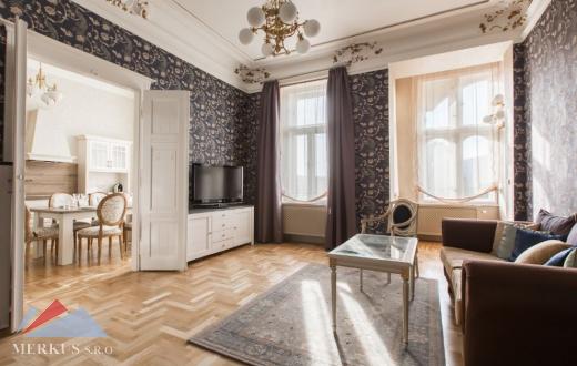 Предлагаем на продажу полностью меблированную роскошную квартиру 4 + КК прямо в центре Праги, в историческом доме. Квартира расположена, на втором этаже здания с лифтом.