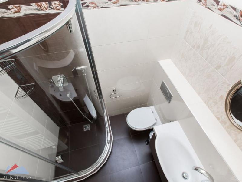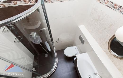 Квартира в личной собственности площадью 105,5 м2 имеет прихожую (холл), гостиную, соединенную с другой комнатой (кухней), главную спальню с собственной ванной комнатой и ванной, включая туалет, вторую спальню и ванную комнату с душем + туалетом. Обе спальни ориентированы во внутренний двор, гостиная и кухня - на улицу с западной стороны. В гостиной вас ждет незабываемый вид на Пражский град, реку Влтаву. В коридоре вы также найдете гостевой туалет с раковиной, который находится непосредственно у входной двери.