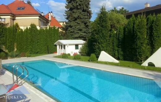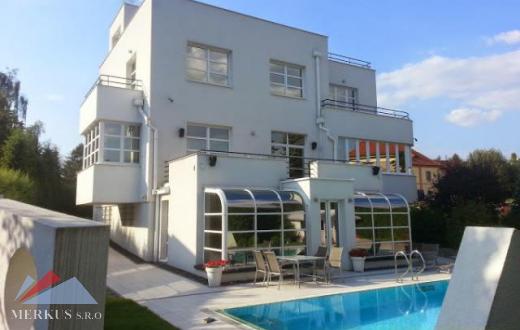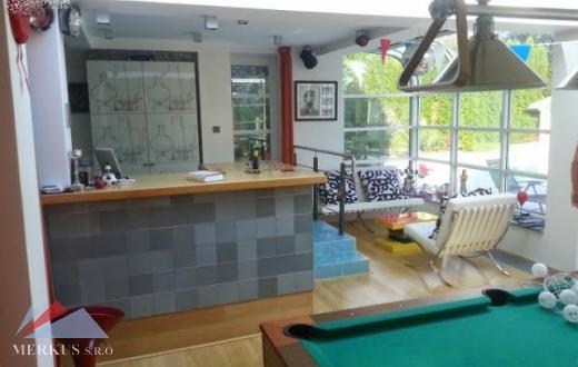 Предлагаем на продажу роскошную виллу в востребованном районе, Праге 6. Общая площадь дома 600 м2, площадь земельного участка 1257 м2. Дом состоит из 4 этажей. Вилла была полностью отремонтирована и оснащена современной техникой и электронным управлением отоплением, кондиционером, светом, мультимедийными системами, сигнализацией. Вилла расположена на передней части участка, за домом находится просторная терраса и бассейн. На 1-ом этаже дома находится кухня, столовая, просторная гостиная с выходом на террасу, ванная комната, туалет. На 2-ом этаже располагаются 2 спальни, ванная комната с туалетом и выходом на террасу, гардеробная. На 3-ем этаже – рабочий кабинет с выходом на террасу. На подземном этаже располагается гостевая комната с видом на сад, гараж, технические помещения, игровая комната, бар, домашний кинотеатр с выходом на террасу к бассейну. Из всех террас открывается прекрасный вид на Прагу. Отличная транспортная доступность до центра Праги. В районе хорошо развитая инфраструктура.