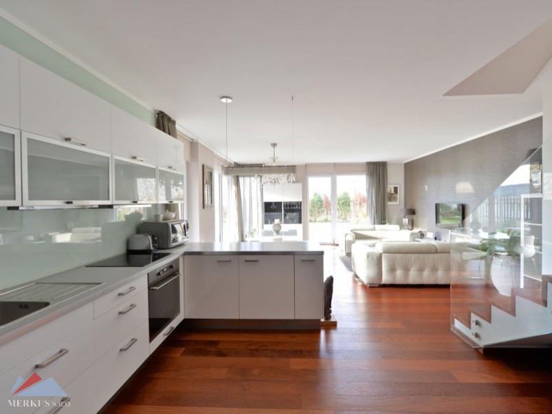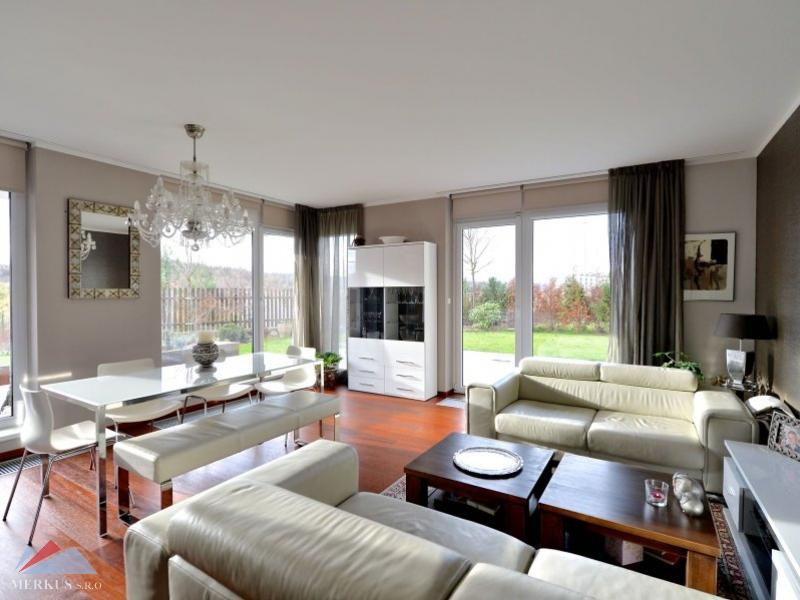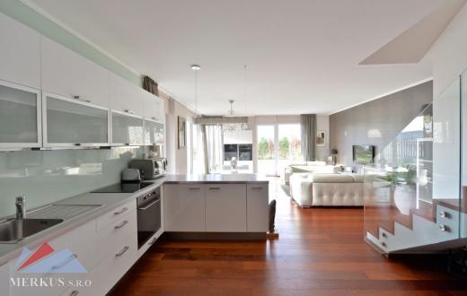 Новостройка семейной виллы находится в престижном районе Праги 5 – Смихов. Дом 3-х этажный, кирпичный. Общая площадь участка – 308 м2. Окна виллы выходят на южную сторону поэтому комнаты очень светлые. На первом этаже виллы расположены: просторный холл с гардеробной, гостиная – 39.7 м2 с выходом на участок (182 м2), кладовое помещение, 2 х техническое помещение и туалет. На втором этаже находятся три спальни (16.6 м2, 12.6 м2, 12.6 м2), гардеробная и ванная комната. На третьем этаже: спальня (28.5 м2) с собственной ванной комнатой и гардеробной, терраса 30 м2 с видом на зелень. В доме есть гараж (44 м2). Очень тихий зеленый район с удобным транспортным сообщением до центра Праги.
