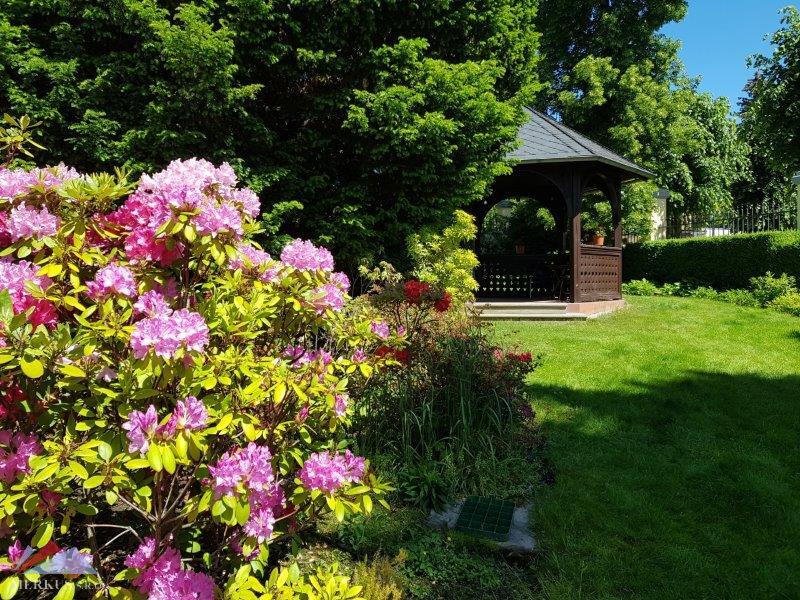 Особняк имеет два надземных этажа, подвал, красивый участок с декоративными и плодовыми деревьями и гараж для двух автомобилей.