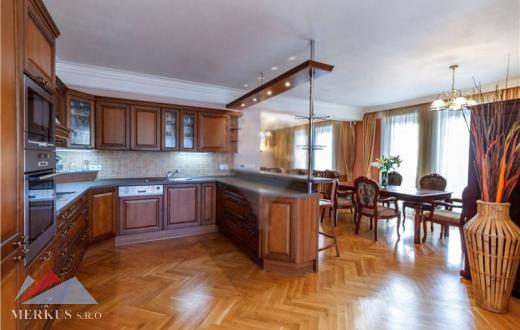 Предлагаем к продаже роскошный дом 5+кк в Праге 6, районе Пршедни Копанина, на улице K lávce. Дом четырехэтажный, есть несколько террас, открытый бассейн с баром, красивый сад. В цену входит стоимость всей мебели и оборудования. На 1-ом этаже находится бассейн, джакузи и домашний кинотеатр, а также сауна и спортзал. Рядом с домом есть гараж на 2 машины. На полах деревянный паркет из массива дуба, мрамор и мозаика в зоне бассейна. В доме установлена система безопасности, видеонаблюдения, проведен интернет и кабельное ТВ. Хорошая транспортная доступность, всего 6 минут езды до аэропорта Праги, 5 минут до международной школы и примерно 15 минут до станции метро Дейвицка. Остановка автобуса находится в 2 минутах ходьбы от дома. В непосредственной близости вся инфраструктура, луга и леса для оздоровительных прогулок.