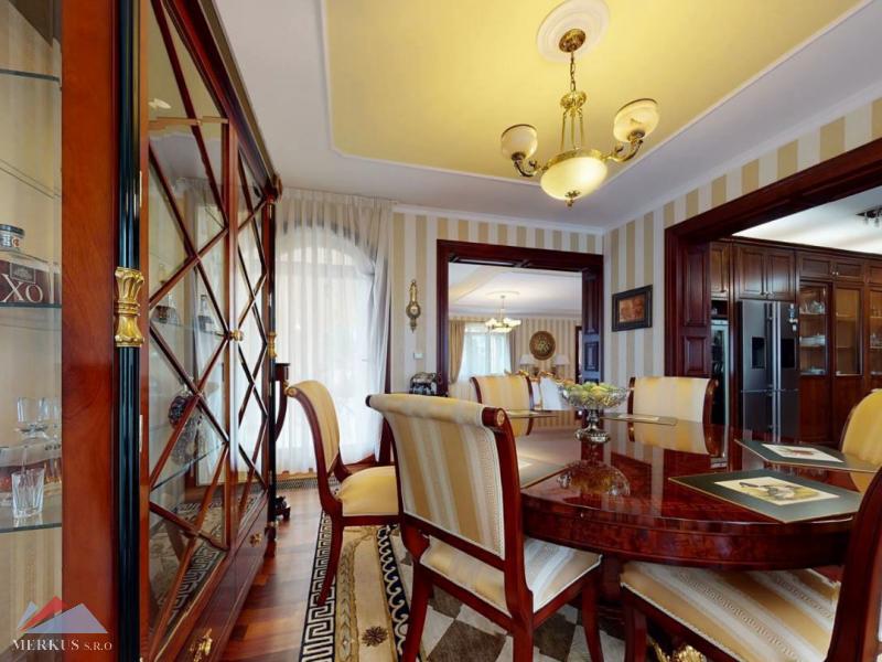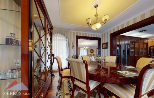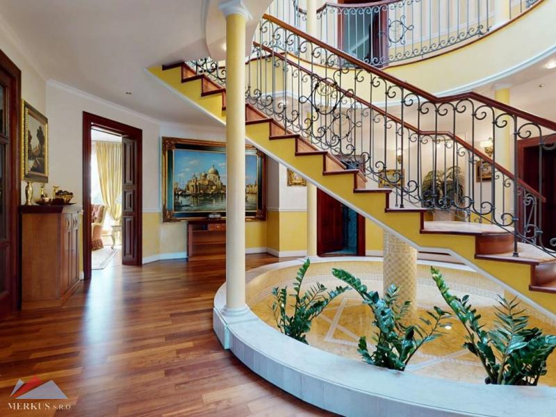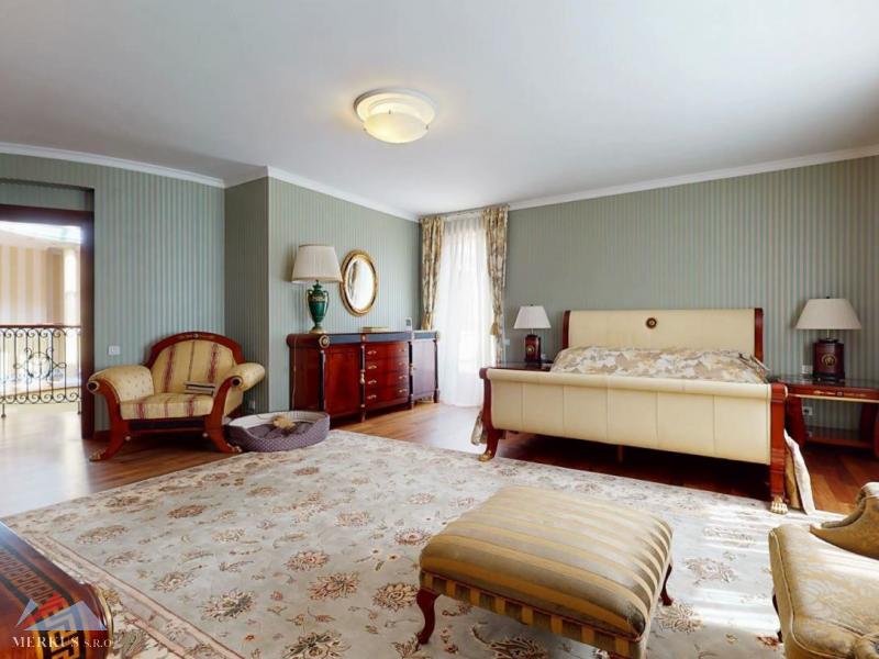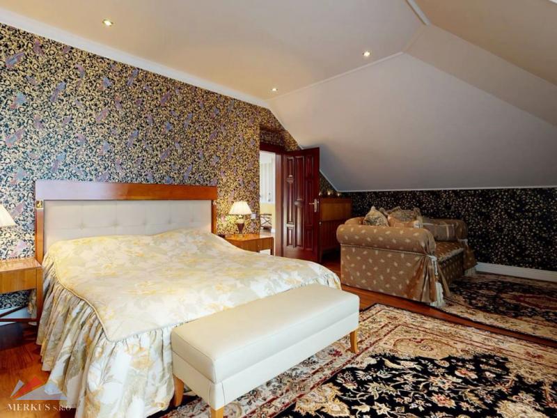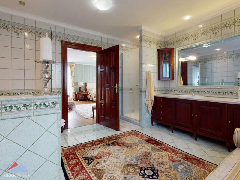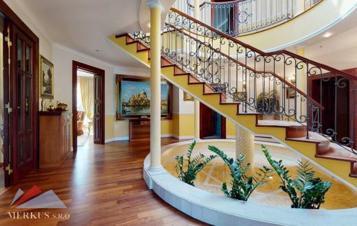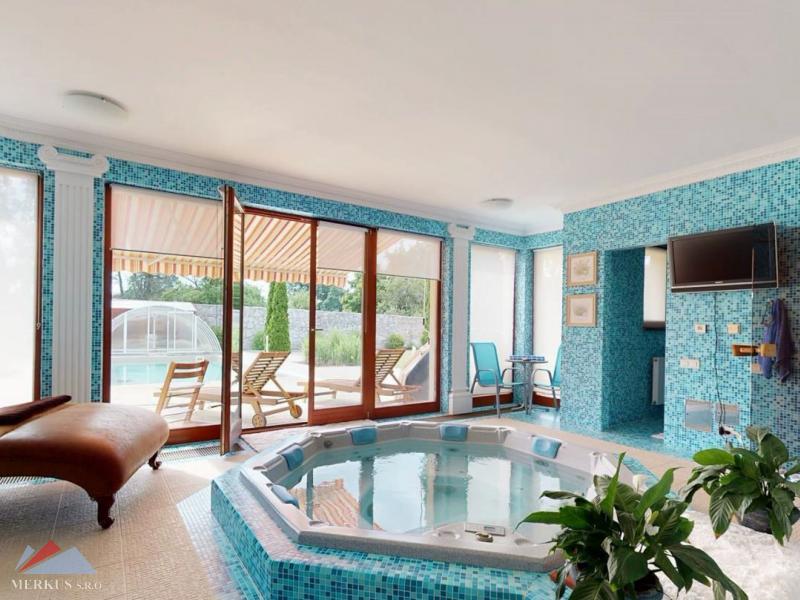 Продается вилла 770 м2, 5+кк, Участок 4 307 м2, Прага- Запад, Jesenice Цена 2 100 000 евро Дом был построен в 2006 году, а в июне 2020 года интерьер и экстерьер были модернизированы. Все используемые материалы имеют первоклассное качество с точной обработкой и самым профессиональным монтажом. В интерьерах преобладает экзотическое дерево (полы, двери, дверные рамы, окна, сайдинг, лестницы). Достаточно света даже в центральной части дома обеспечивает стеклянная крыша над лестницей. На первом этаже находится гостиная с камином, кухня, столовая, кабинет, фитнес-центр и оздоровительный центр с джакузи и сауной, а также необходимые технические помещения. Большинство номеров на первом этаже имеют прямой выход в сад. На 2 этаже можно попасть в три спальни, каждая из которых оборудована собственной ванной комнатой, и далее в кабинет, из которого лестница ведет на чердак, служащий комнатой отдыха с бильярдным столом и проекционным экраном. Из гаража на два больших автомобиля можно пройти прямо в дом, парковка для нескольких других автомобилей находится перед домом. Дом полностью кондиционирован, отопление осуществляется газовым котлом с баком для горячей воды. Резиденция окружена со всех сторон большим, профессионально ухоженным декоративным садом, в котором также есть крытый бассейн с подогревом. Все удобства, торговый район, детский сад, школа, несколько ресторанов и аквапарк находятся в нескольких минутах езды.