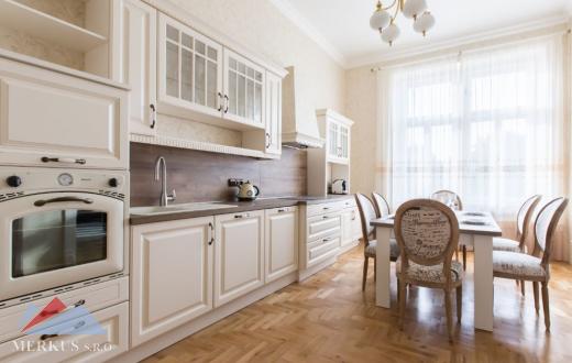 Предлагаем на продажу полностью меблированную роскошную квартиру 4 + КК прямо в центре Праги, в историческом доме. Квартира расположена, на втором этаже здания с лифтом.