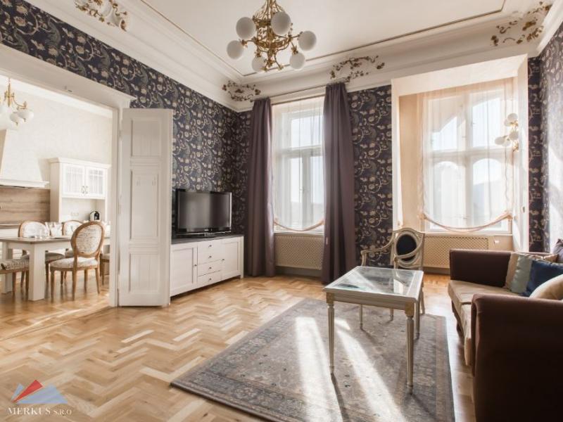 Квартира подверглась полной и обширной реконструкции с нулевой точки всего 2 года назад, все новое, почти неиспользуемое. Новая роскошная кухня со всей бытовой техникой, паркет из натурального дерева, отремонтированные 115-летние двери, копии люстр и светильников времен австрийской императрицы, потолочные украшения, Императорские обои, портьеры, шторы. Это красивое историческое здание, расположенное в самом центре Праги в непосредственной близости от Национального театра с прекрасным видом на самую красивую панораму Праги - Градчаны, Карлов мост и танцевальный дом. Недалеко от дома находится трамвайная остановка, за несколько минут можно дойти до станции метро линии B Národní třída. В нескольких минутах ходьбы находятся школы от детских садов до колледжей, медицинские услуги, а также торговые центры, театры и магазины. В окрестностях находится множество архитектурных жемчужин-например, Манес, национальный театр, Дворец Жофин. На Славянском острове с детской площадкой, поездом и небольшим парком вы найдете приятный оазис для своей семьи, детей или внуков.